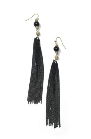 I spotted these in Club Monaco and was quite surprised when I picked them up and realized that the fringe is made of fine metal chains, and not silk, as I had expected.