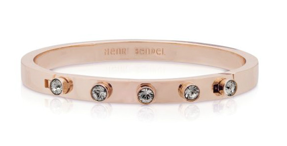 From limited to mass, Henri Bendel has these stackable bangle bracelets adorned with crystals. There are variations, including full rhinestone embellishment, white and yellow metal.