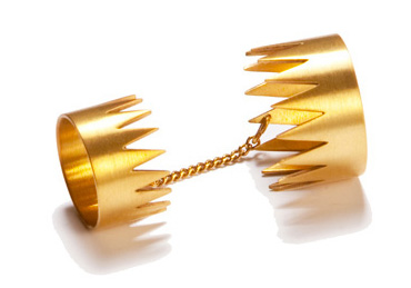 The animal trap design (can’t really think of another way to describe this) in this ring by Annelise Michelson is pretty intriguing. The two sections of the ring are (obviously) sized differently, to accommodate the tip and base of the finger.