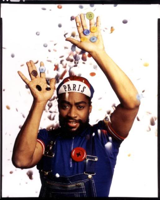 Kelly was fond of using buttons in his design – oversized, colourful and whimsical as seen here worn by him.