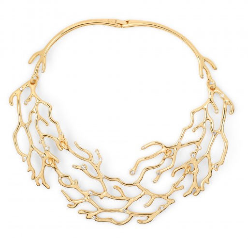 This necklace has a few things going for it: it’s got great presence and the size nicely accents a neckline. It’s plain enough (gold plated metal) to be subtle, with just enough flash (tiny rhinestones sprinkled throughout) to make it visually interesting. And it would make a great gift for someone who may like sparklier pieces but is afraid of too much glitz. (Come in – the water’s fine!)