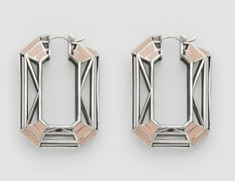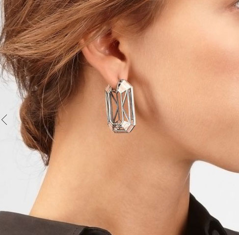 These very elegant earrings by Bottega Veneta are the kind of design that is easy to pass by if you just see it on a web page. But the photo of the earring being worn tells a different story entirely.