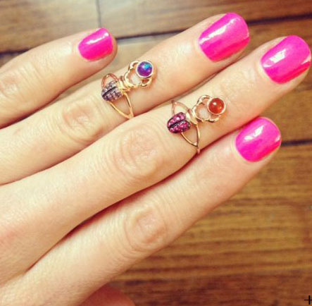 If you do think they are a trend worth trying, these are quite pretty. By Daniela Villegas and available at LA’s Roseark, they are 18k yellow gold. No info is given on the stones used. I think the insect works here – crawling up the hand and perching on the finger. These sell for USD $1,875 each.