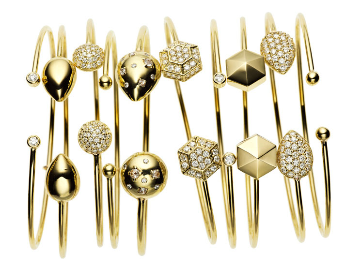 Bangle bracelets come and go in popularity but they are one of those jewellery staples, always there softly jingling in the background. These plain gold and jewelled bracelets by Jemma Wynne offer a nice take on the classic design, with their open ends and endless stacking opportunities.