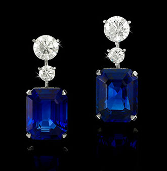 These are not just diamond and sapphire earrings by London jewellers David Morris. They are, in the jeweller’s words, important diamond and sapphire earrings. (I get a kick when that term is used in auctions and descriptions of jewels.) This piece is so important it is unnecessary to elaborate the specs of the stones or metal.