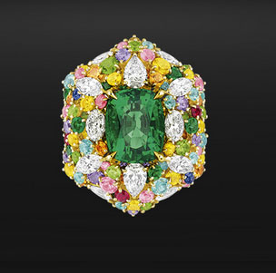 This ring, part of the Cher Dior collection and named Fascinante Emeraude, is pretty much an undoubtedly expensive party on your hand. The pastels and profusion of different stones would not be out of place in an Easter parade – a very colourful one.