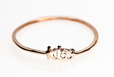 This sweet Kiss ring by Iwona Ludyga is a cute way to wear your heart on your hand (if not on your sleeve). Made in 14k yellow gold, it is priced at USD $210 and available from Ludyga’s web site.