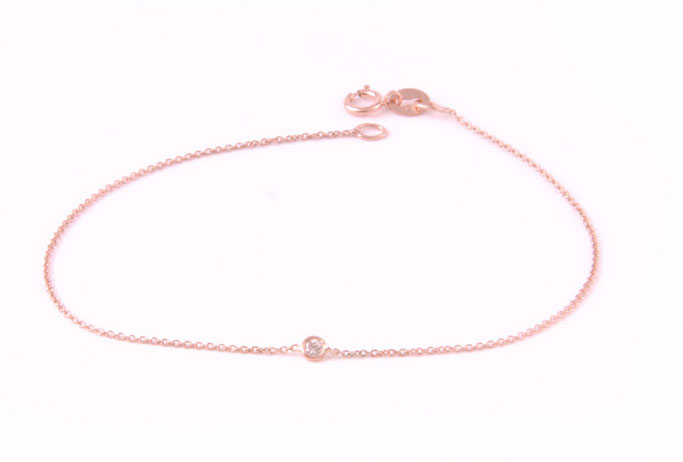 The single, bezel diamond was popularized by Elsa Peretti’s omnipresent (in design anyhow) Diamonds by the Yard collection. While I love her work, I will admit that the prices can be hard to stomach. If you want the look without the little blue box and accompanying high price tag, this Flirty Bracelet by Hortense Jewelry is a nice option.