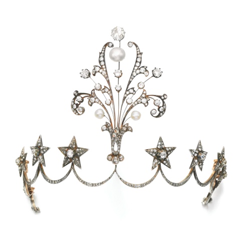 You don’t have to be royalty to wear one and you don’t even have to be a millionaire. Sotheby’s sold this late 19th century aigrette tiara for USD $24,579 (including buyer’s premium). An aigrette was a popular spray of feathers or jewels worn to mimic an egret feather and often worn in the hair or as a brooch.
