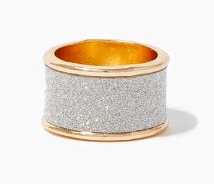 This Marcelle Shimmer Ring by Charming Charlie is a thick gold metal band with a chiselled effect around the centre that makes it look like shimmering stones. Not sure if you are comfortable with a wide band, or a super blingy look? For USD $8, try it and either forget about it or love it and wear it to death.