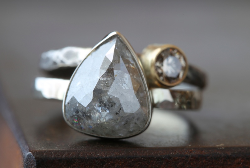 This ring by Alexis Russell uses a large and lovely rose cut diamond. I am sure it would be considered highly imperfect by many engagement ring shoppers. As they say, beauty is in the eye of the beholder.