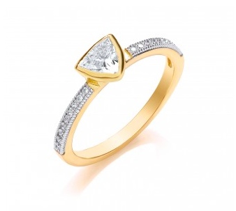 Made of sterling silver set with cubic zirconia, it is plated with 18k yellow gold. The band is set with micro pave CZs, for a total stone weight of .80. And a very pleasing price of £65.00.