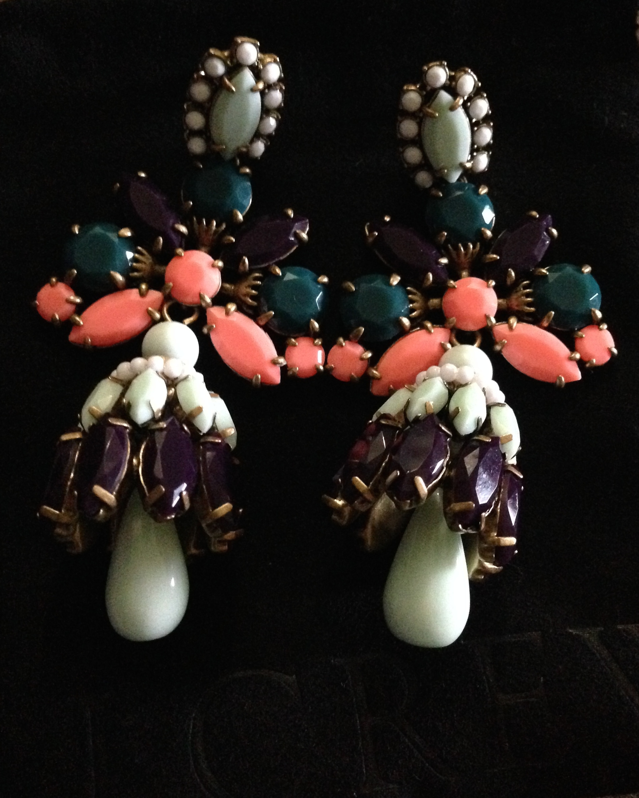 So when I saw these at a local J. Crew and held them, I was surprised that they were lighter than you would expect given their size and materials (resin, plated brass and epoxy, though the aqua stones sure feel like glass to me). And when the sales assistant cheerfully told me that they were 50% off their already reduced price and so therefore cost about $35 … sold! I may never wear them but they are giving me a lot of pleasure to look at. On the US J. Crew site, these are still full price at $85 but given the look and the workmanship, these would still be a solid yes from me.