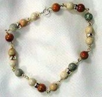 I did buy two bracelets, one with caymanite and sterling beads, and one that also had black coral beads; alas, I do not know who the artisan is.