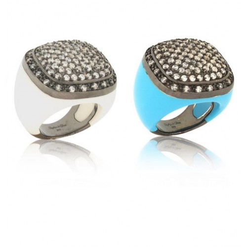 Named for famed diva Maria Callas, this chunky ring is offered by Angelique de Paris. It’s made of sterling silver, blackened rhodium, resin and cubic zirconia. Available in either an aqua or white finish over sterling silver. Their pieces are solid and well made and yes, I can see Callas (or any diva) happy to have this sparkling on their hand.