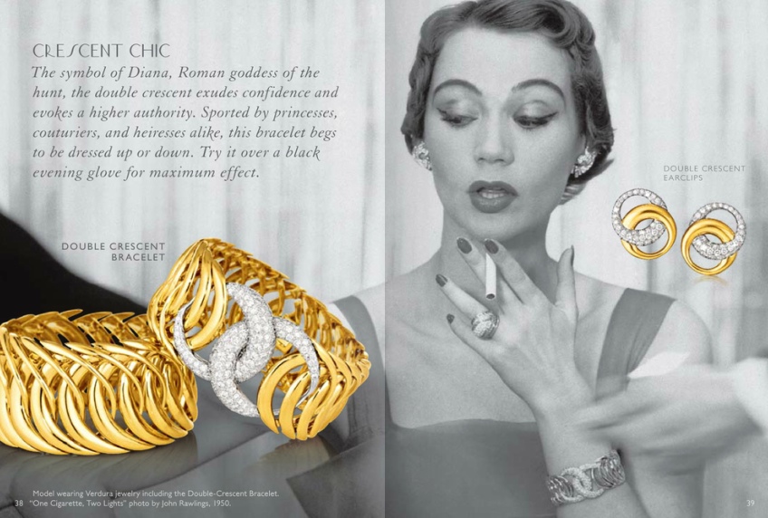 As part of their catalogue, Verdura juxtaposed items with vintage photos of celebrities, socialites and models. Elegance is timeless; point made.