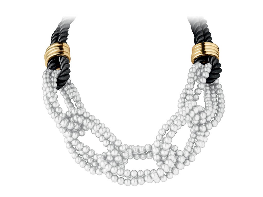 They were showing spring/summer 2015 and there is a crystal flower necklace that is on my must have list. In the meantime, this Behar necklace is a pretty for fall alternative. It features faux pearls on a braided black silk cord with gold plated findings. It retails for €85.