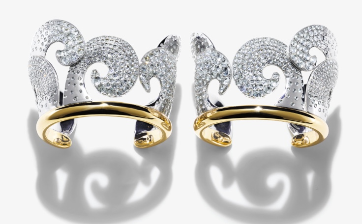 It’s somewhat sad that these cuffs look so gorgeous when photographed alone, and fairy disappeared when worn by Emma Stone at the 2015 Academy Awards. I am sure that, seen up close, they were every bit as spectacular as in the photo below, but it’s a real shame that it just didn’t come across in pictures.
