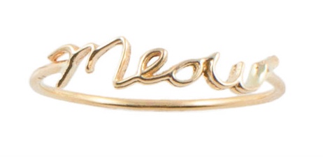 For all you crazy cat ladies and lads out there, here is a way to proclaim your animal affections. Bluhobo offers a ring spelling out Meow, which they say is in tribute to Michelle Pfeiffer as Catwoman. Meow indeed.