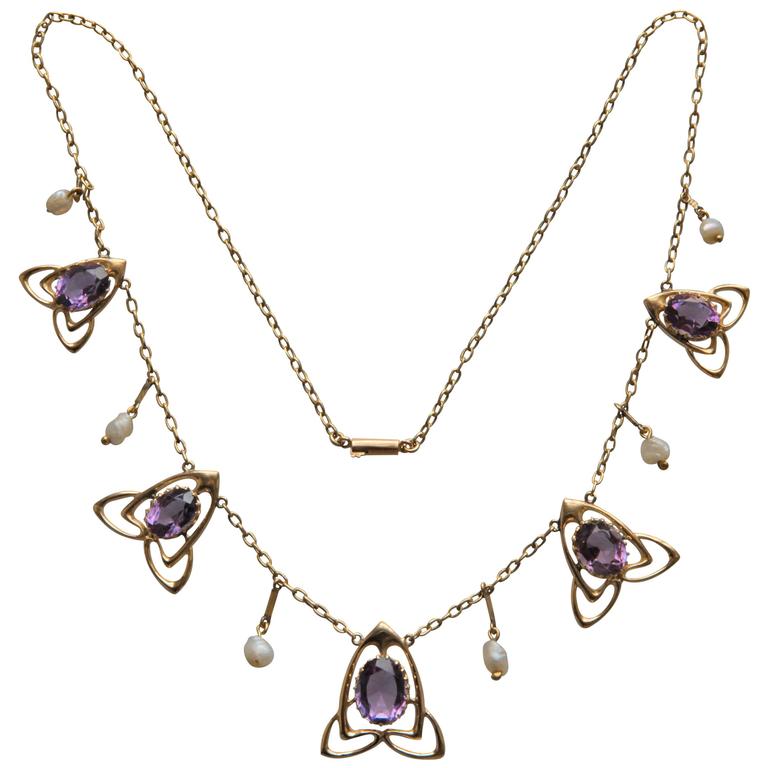 Archibald Knox was the company’s principal designer and his work is highly collectible today. This piece is offered by noted seller of A+C and Art Nouveau pieces Tadema Gallery. They note, “A lovely Liberty & Co Art Nouveau necklace in gold and amethyst designed by Archibald Knox Documented: cf. Liberty Jewellery sketch book page 216, model number 8167 Archibald Knox, Stephen A. Martin, 2001, page 249. Fitted case.”