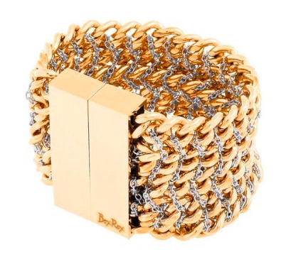 Chains and links are a staple in jewelry design. In this bracelet by Bex Rox, multiple chains are used to create a cuff.