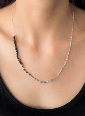 Though those beads were more substantial and fewer in number, I’d happily take this rough diamond necklace by Barrio Neal. They note, “This limited edition necklace features an 8 inch strand of small rough diamond beads that transition in color from white to champagne, to black. The beads are attached to a sterling silver cable chain with a handmade toggle clasp for a total necklace length of 20 inches.