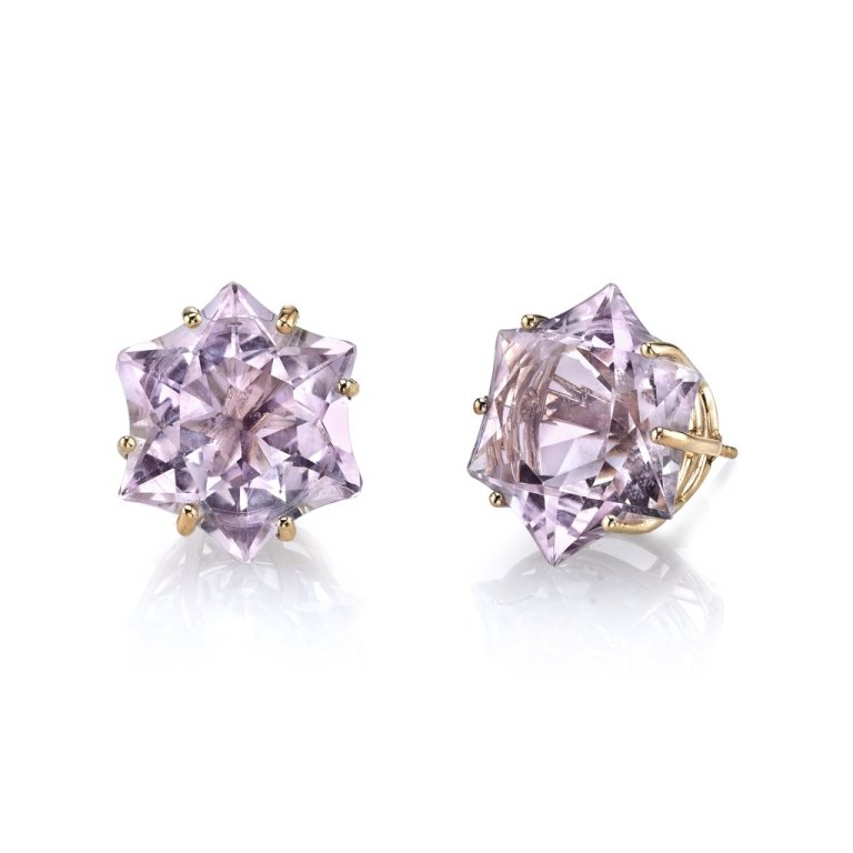 Love the pretty and unique cut of these earrings, into a star shape. By Amy Gregg and available from Roseark, these feature pile pink amethysts set in 18k gold.