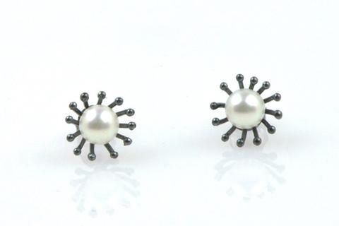 If simple pearl stud earrings are too simple for you, this gussied up pair by Kojima Pearl is worth a look. An oxidized sterling silver spikey halo frames a 6.5mm Chinese freshwater pearl. These sell for USD$135.