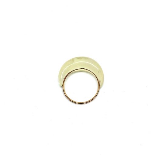 Jess Panza specializes in glass, and this ring features a domed piece of pale green glass set into 14k yellow gold. Plus, you can opt for literally 127 different colours of glass. (Colour shown below is no. 118, Moonglow.) About the artist: Jess Panza is a Los Angeles-based jewelry and decorative objects designer who hails from Pittsburgh, Pennsylvania. She works out of a tiny studio in the derelict but soulful old bank district in downtown Los Angeles. when she is not at work, she is at home with her husband and their two young children in the Atwater Village neighborhood of Los Angeles, California.