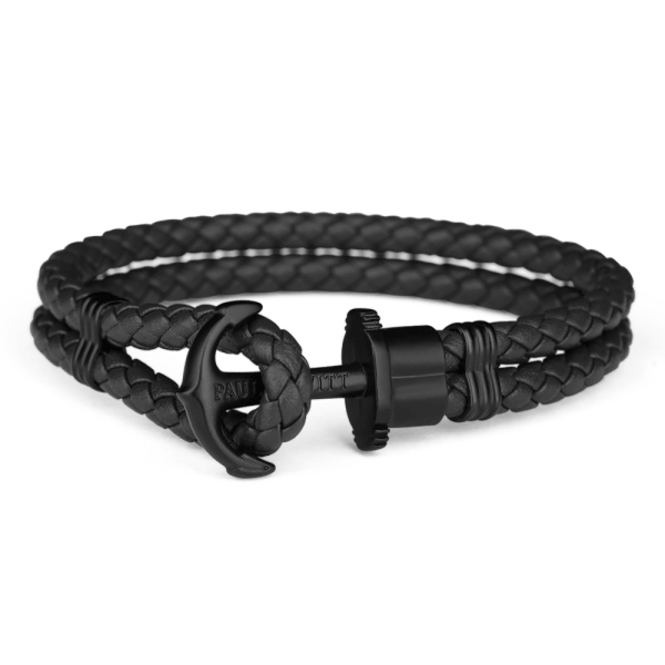 This comes in many different colour combinations and sizes, both as to the leather and the metal anchor (composition is not specified). This matte black version sells for USD$59.90.