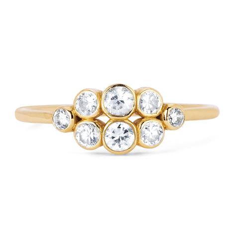 The words “diamond cloud” sound mighty tempting, and this ring by LA-based Logan Holowell is a pretty temptation indeed. Holowell’s “about” page notes, “Raised on the Outer Banks of North Carolina, Logan grew up surrounded by wilderness and the magic of nature. Many childhood nights included stargazing and admiring the moon, captivated by the comfort of the cosmos. Most of her younger years were spent outdoors hiking, fishing, and boating – living simply and free. Logan went on to study Fine Art and Psychology. Human nature and interaction has always piqued her curiosity in knowing that every person has a story to tell. Learning about different civilizations across history, specifically Native American and Egyptian cultures, created a fascination with heirlooms and creating one of a kind pieces to pass down. She designs and constructs each handmade piece in downtown Los Angeles, with an organic and asymmetrical aesthetic, special and perfect in its own right, like human nature. Nature and spiritual symbolism were the foundation of Logan’s upbringing, which is shown throughout her fine jewelry collection laden with totem animals, constellations, precious stones and metals, and sacred numerology. “There are no straight lines and confined boundaries in nature. Each imperfection is what makes it beautiful,” says Hollowell. Logan designs with intention. Each piece is made with the love and magic that she came to know through nature and the universe. Logan’s mission is to empower and inspire others to live as their best selves while letting go of fear and breaking boundaries of societal expectations and constraints.”