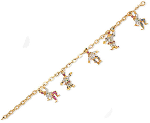 People either love or loathe clowns. But this sweet little charm bracelet, offered for sale in the upcoming October 11 auction by Bonhams, could swing you to the love side. Fall is usually the run up to extravagant jewel auctions (holiday and Valentine’s Day gifts, presumably) but this is a more modest offering.