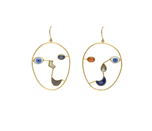 There’s something equally fun and creepy about these earrings, but they tip the scales into fun for me. Made by Grainne Morton of antique glass eye beads and precious stones set in metal (content not stated, but I presume it’s gold.)
