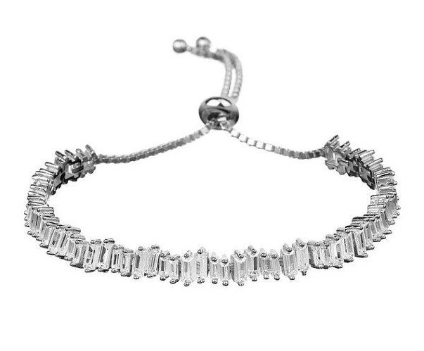 I really like the look of baguette cut stones, and they are used to pleasing (jagged) effect in this sterling silver and cubic zirconia bracelet by Alexis Daoud. It has a pull/zip type closure that would fit most wrists and it lends itself well to being worn as part of a stack.