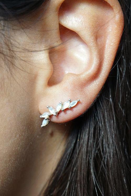 I like the way these earrings from Laurie Fleming accentuate the ear lobe without being too much or too heavy to wear daily. They can also be rotated to mix up the look a bit. These are available in various colours of 14k gold and set with mother of pearl. Sold individually, they sell for USD$485 apiece.