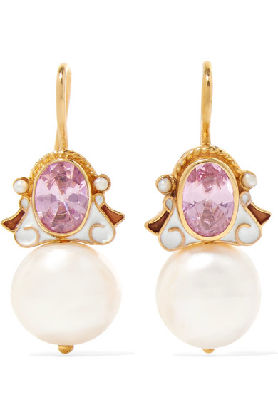 I love the lush look of these earrings by Percossi Papi. A Net-A-Porter exclusive, they explain, “Diego Percossi Papi’s ornate designs are incredibly popular in Russia – he has been a part of the jewelry scene there for years and was once made guest of honor at the Diaghilev Festival. These gold-plated silver earrings are decorated with 2.56-carats of faceted rose zircon and white enamel, painted using a signature cloisonné technique. Lustrous pearls fall elegantly just below the lobe.”