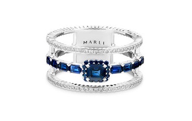 It took me a second to realize that the use of the word emerald in the name of this ring referred to the cut of the stone by Marli NY, and not to the gem (which is a sapphire).
