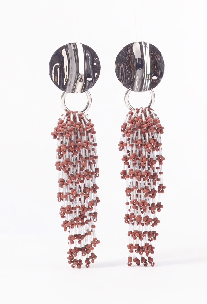 These earrings by Philip Lim are part of his fall 2018 collection, but they seem to have a more warm weather vibe to me. His site explains, “Beaded earring constructed from asymmetrical cascading beaded strands, anchored by textured metal plate. Can be work both as clip on or with hidden post. This item is expected to ship by August 25th, 2018.”