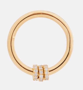 Spinelli Kilcollin is best known for their interlocking rings. Here, a simpler design: a plain band set with three diamond set discs.