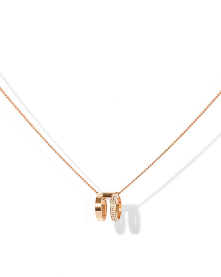 Repossi is known for grand, over the top pieces, but also does very wearable, more minimalist designs. This pendant necklace is made of 18k rose gold, with a half-diamond pave totalling .09 carats of diamonds. The chain is approximately 24 inches long.