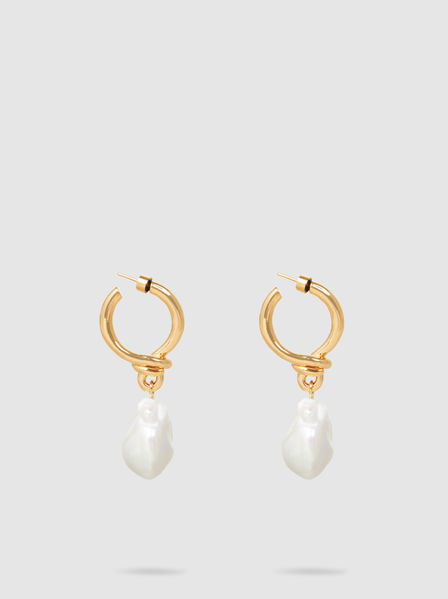 These are a classic look – a hoop with a dangling pearl. These are from Greek designer Ileana Makri, and made with gold plated sterling silver accented with a baroque pearl.