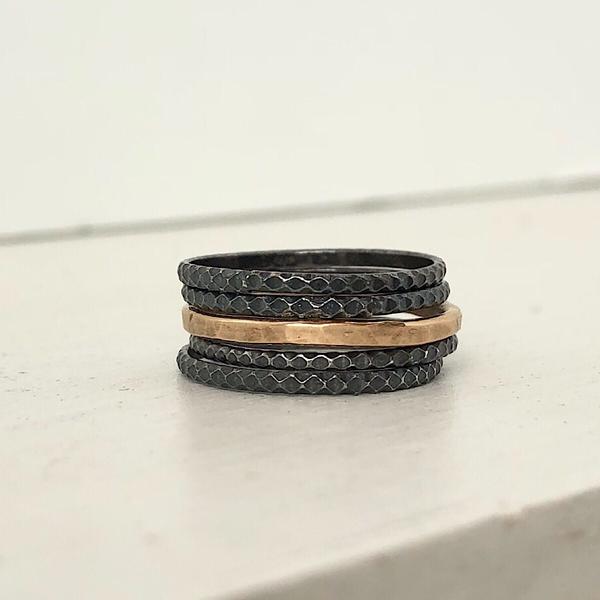 Isabelle Grace has a lot of affordable and pretty options to help tick off your holiday gift list. This mixed metal set features four oxidized sterling silver bands and your choice of a rose gold filled, yellow gold filled or sterling silver band.