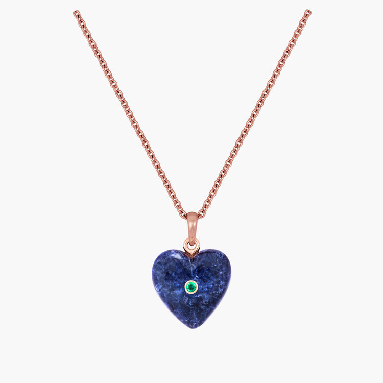 Hearts are an ever popular motif, here rendered in blue sodalite accented with an emerald by Switzerland-based Nina Fink.