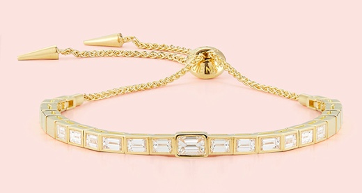 Baguette cut diamonds are less often used in jewellery these days, and I like the way they’ve been set in this bracelet by Jemma Wynne.