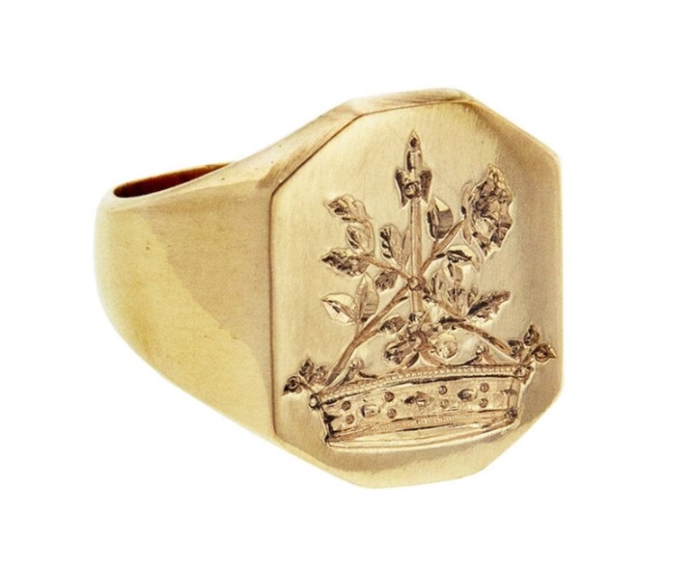 I love the way signet rings carry history – or allow you to create your own. This version, by Kim Dunham, does the latter. Dubbed the Queen Gentry Signet Ring, it’s available from Ylang23, who note that it was iInspired by old heraldry and is engraved with Edith Piaf’s famous song title, “No je ne regrette rien” (I regret nothing – Edith Piaf). (I’m not sure where on the ring this engraving is, but I hope they spelled the French version of non correctly!) It is made of 14k yellow gold. Ylang23 also notes, This exclusive Kim Dunham X Ylang 23 collaboration honors the seven Archetypes of Women: