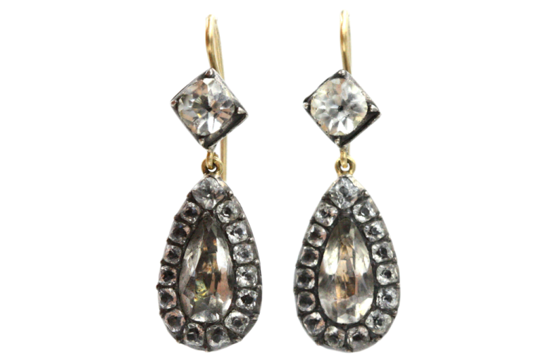 Georgian paste is revered by collectors. These were an early effort to mimic diamonds, and made of glass backed with foil to reflect and refract light. In the lower candle and gas light of the era, they were a great substitute for the more precious and very rare diamonds. The painted on black dot enhanced the illusion of depth to the stone and mimicked the cut of diamonds of the era..