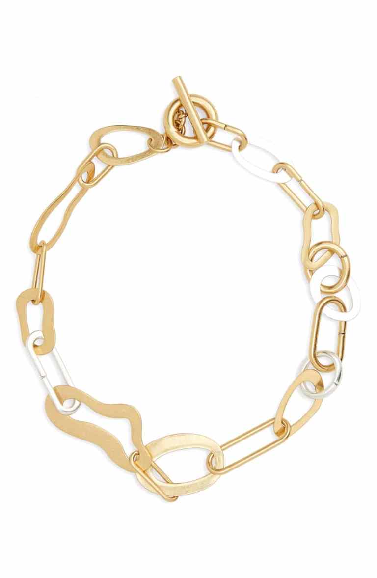 The word is that big and bold are in for jewels in 2019, so get out your biggest, baddest pieces. In case you want to start small and work your way up, Madewell offers this oversized mixed metal chain link necklace.