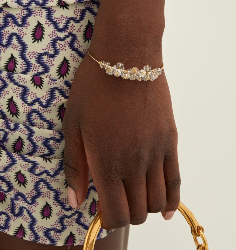 Isabel Marant has long been the queen of hipster cool. This beaded bracelet, available from Matches Fashion, is described this way: “Isabel Marant is known for lifting simple styles with elegant touches, as seen in this gold-tone metal bracelet. It’s meticulously crafted in France with a small logo plaque that suspends from the hook fastening and is embellished with dazzling clear Swarovski crystals. Secure it on your wrist and set it against a printed mini dress for an intimate dinner date.”