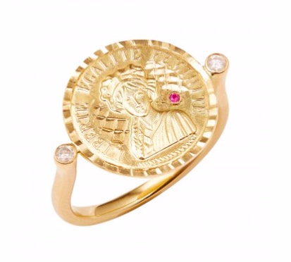 This ring by Anissa Kermiche has a fun take on the well-known French phrase liberté, égalité, fraternité. Instead, it substitutes the last word with feminité.