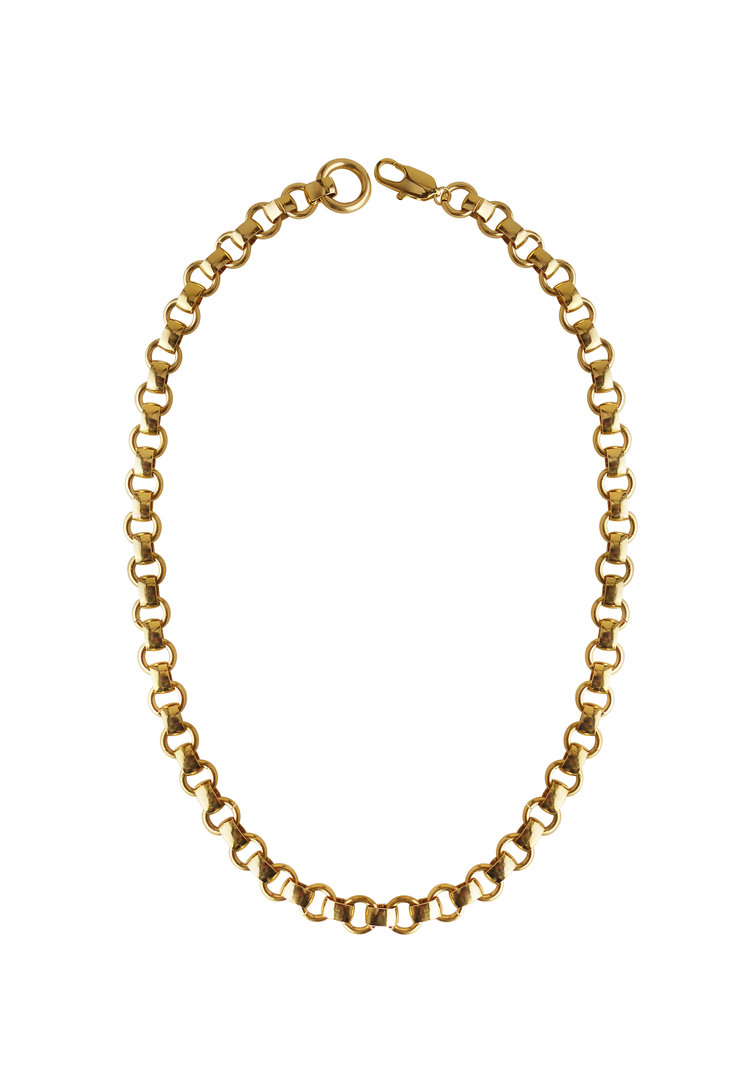 By Laura Lombardi, this is a 14K gold plated hand linked brass chain with a lobster claw closure. It is adjustable with a chain that measures 18” in length. It is made to order and, they note, hand assembled link by link. So allow enough time for manufacture when you order.